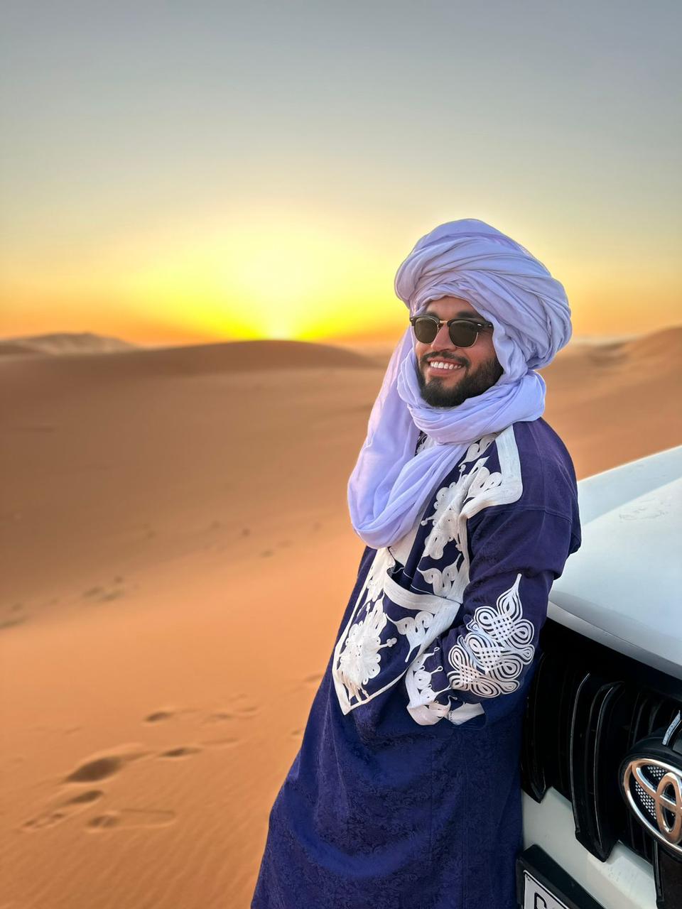 In his late teens, Hassan’s thirst for knowledge led him to be Fluent in Arabic, Berber (Tamazight), English, and Spanish, he has a gift for turning every stop into a story—whether it’s the history of Ait Ben Haddou’s mud-brick towers or the secrets of a perfect tagine. His desert roots give him an uncanny ability to read the land, from spotting hidden oases in the Draa Valley to knowing the best dune for a sunset climb.